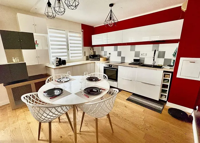 Een complete keuken met een vaatwasser is beschikbaar als onderdeel van de zelfvoorzienende voorzieningen van de accommodatie. De Faubourg de la Paix bushalte is op loopafstand van ongeveer 5 minuten. Extra voorzieningen omvatten een terras.